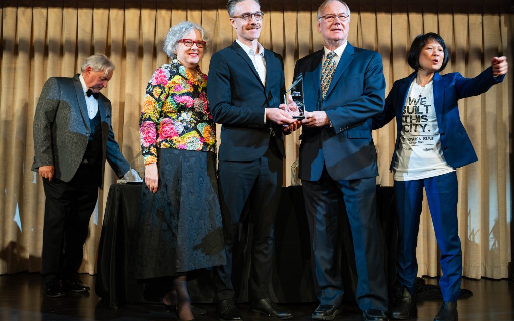 Last December at the historic Palais Royale, at the 12th Annual TABIA and City of Toronto Awards Night, the Roncesvalles Village BIA was honoured with theย Streetscape Awardย for our collaboration with the STEPS I HeART Mainstreet Challenge.